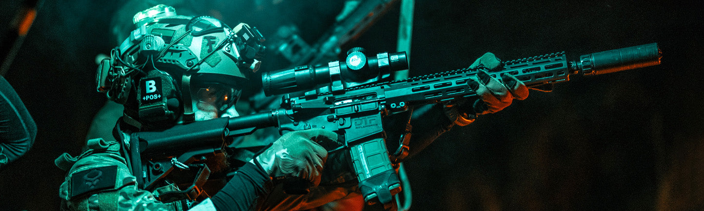 Ammo PatchPerson wearing tactical gear with a gas mask and 'AMMO' logo, on a dark background. #in_field